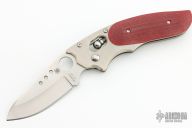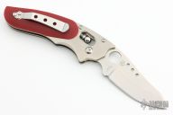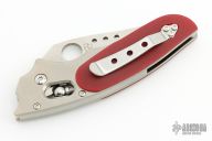 This Phoenix by Spyderco is a Howard Viele Design. The blade is satin finished with thumbhole opening. The handle has a titanium frame with red G-10 scales, stainless steel backspacer, and a tip up stainless steel clip. Comes with original box and papers.  Excellent Condition.