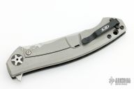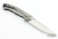 This 0452CF Sinkevich designed folder from Zero Tolerance features a drop point blade with swedge. The blade has tumble finished flats and satin grinds. The handle has a carbon fiber scale on the non lock side, and a tumbled finish titanium frame lock on the other. Serial #022339.  Comes with original box and papers.  Excellent Condition.
