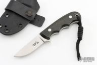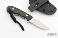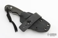 This custom knife by Keith Murr features a satin finish blade and a black micarta handle. .142" blade stock. .767" Blade Depth. File work on thumbrest. Full tang construction. Great feel in the hand. Very nice work.  Includes a black kydex sheath.  Has some minor sheath marks otherwise the knife is in excellent condition.