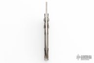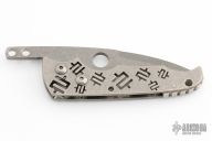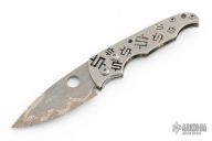 This Snody Escalade Elite Friction Folder features a stonewashed titanium blade with large hollow grind on one side with a carbidized edge, thumb hole and friction folder style opening. The handle is stonewashed titanium with the classic $ logo milled out, bead blasted and notched aluminum backspacer. Nice blade seating. Excellent condition.