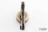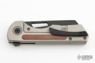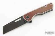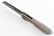 This Production Yeager by Brian Brown features a wharncliffe style blade with black tumble finish. The handle has a tumble finish titanium frame with titanium pivot collars, black matching tip up clip and tumbled backspacer. Natural canvas micarta inlays. Comes with a zippered case, COA and extra hardware. Has some scuffs and small dings, otherwise excellent condition.