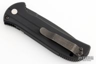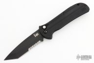 This Entourage auto by Heckler and Koch features a black tanto partially serrated blade. The handle has a black aluminum frame with tip up black stainless steel clip. Has safety. Comes with original box and drawstring bag. Excellent condition. Marked Prototype January 2012