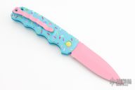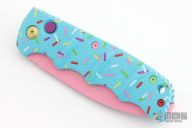 Although its path to existence was unorthodox, the Dessert Warrior is here to stay. And now, entering the standing-room-only Dessert Warrior stage is the Dessert Warrior Remix! Take the original Boker Kalashnikov Dessert Warrior and flip it around with a touch of glamour, and you’ve got the blue-frosted, sprinkle-covered 2023 edition. With the colors reversed, there’s a candy pink AUS-8 steel blade to go with your frosted handle, and you’ll find the whole happy accident is still a Kalashnikov creation, with Kalashnikov’s tasty, speedy automatic action and high-performance, high-value materials.