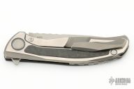 This Hati Gen3 by Shirogorov Knives features a drop point blade with notched thumbrest and flipper. The handle has marble carbon fiber and titanium frame with marble carbon fiber inlay, titanium tip up clip with hidden screws, titanium backspacer with lanyard hole. Rides on bearings, nice detent, lockup and blade seating. Comes with COA and original box. Excellent condition.