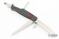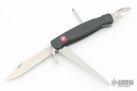 The Wenger Mountaineer is a retired, 125mm locking-blade Swiss Army knife with a locking blade, wood saw and basic tools. It was by far the most popular of the initial series of Wenger long folding knives, available from about 1992 to 2007. Comes with a velcro case. Excellent condition.