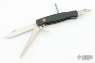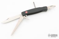 The Wenger Mountaineer is a retired, 125mm locking-blade Swiss Army knife with a locking blade, wood saw and basic tools. It was by far the most popular of the initial series of Wenger long folding knives, available from about 1992 to 2007. Comes with a velcro case. Excelletn condition.