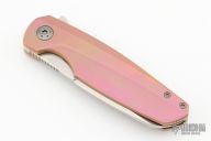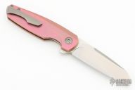 This Haptic by Holt Bladeworks features a tumbled blade with a notched thumbrest and flipper tab. The handle features a milled and anodized titanium frame with a titanium tip up pocket clip with hidden hardware. Nice detent, lock up and blade seating. Includes the original box, tool and card. Excellent Condition.