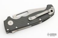 This AD20 by Demko Knives features a stonewashed clip point blade with notched thumbrest. The handle has a carbon fiber frame with a tip up stainless steel clip and "Shark" lock release on the spine. Comes with original box. New from maker!