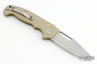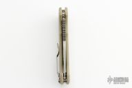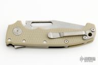This AD20 by Andrew Demko features a stonewashed clip point blade with notched thumbrest. The handle has a G-10 frame with a tip up stainless steel clip and "Shark" lock release on the spine. Comes with original box. New From Maker!
