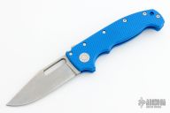 This AD20 by Demko Knives features a stonewashed clip point blade with notched thumbrest. The handle has a G-10 frame with a tip up stainless steel clip and "Shark" lock release on the spine. Comes with original box. New From Maker!