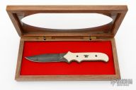 Limited to a serialized quantity of 100 pieces this one is #098, the Buck 970 Carbon Dagger features a 4.125" full tang damascus steel blade. Ivory paper micarta scales with a generous finger grooves add to the overall aesthetics of the beautiful knife. Display with pride with the included glass topped wooden display case and certificate of authenticity. Comes with original box and papers. Excellent condition.