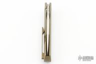This Keen flipper by Massdrop is a Ray Laconico design. It features a satin finished blade with flipper. The handle has a tumble and anodized titanium frame with matching backspacer and tip up clip. Excellent condition. Comes with original zippered case.
