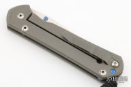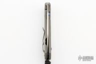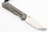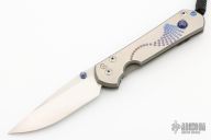 This Large Sebenza 21 from Chris Reeve Knives features a satin finished two tone blade with tumbled flats, single thumb stud and notched thumb ramp. The handle is comprised of a titanium frame with unique graphic. Bead blasted titanium clip and lanyard pin with lanyard in pommel. Includes original box, papers and calf skin pocket slip. COA dated May 7th, 2014. Excellent condition.