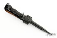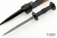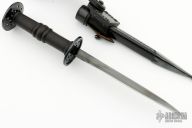 This Rondel Dagger by Cold Steel features a black triangle dagger blade with .620" blade stock, hidden tang construction. The handle has a black steel guard and butt with dark wood grip. Comes with original black leather sheath. Has some light scratches, otherwise excellent condition.