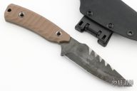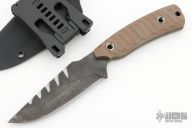 This Nightmare by Black Knight Blades features a black drop point blade with a full tang construction. .135" Blade Stock. 1.370" Blade Depth. The handle has brown G10 scales. Includes a kydex sheath. New from maker!