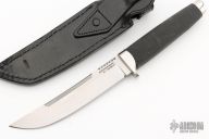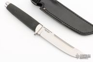 This Model Outdoorsman by Cold Steel features a satin finished blade with notched thumb rest, .188" blade stock and 1.097" blade depth, hidden tang construction.. The handle is comprised of a stainless steel guard and pommel and Kray-Ex grip. Includes a black leather sheath with belt loop. Has a couple light scratches, otherwise excellent condition.