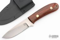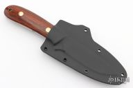 This K-11 Columbia River Skinner by Dozier Knives features a satin finished blade with .140" blade stock and 1.060" blade depth, full tang construction. The handle has cocobolo scales with brass pins and lanyard hole. Comes with kydex sheath with belt clip. New from maker.