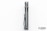 This MAC2 features a stonewashed tanto Magnacut blade with dual thumbstuds and a notched thumbrest.  The handle features a stonewashed and anodized titanium frame with a matching tip up pocket clip. New condition. Comes with original box and COA.
