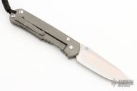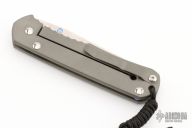 This Large Sebenza from Chris Reeve Knives features a satin finished two tone blade with tumbled flats, single thumb stud and notched thumb ramp. The handle is comprised of a titanium frame with unique graphic. Bead blasted titanium clip and lanyard pin with lanyard in pommel. Includes box, papers and calf skin pocket slip. Dated March 1, 2005. Excellent Condition.