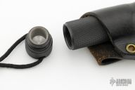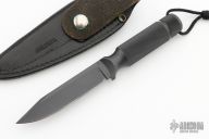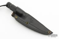 This Mountaineer I by Chris Reeve features a clip point blade with swedge and notched thumbrest, .180" blade stock and 0.857" blade depth. The handle is comprised of one-piece hollow construction with threaded/removable butt cap. Lanyard and lanyard hole in pommel. Includes leather sheath with belt loop. Excellent condition.