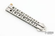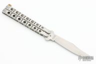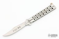 This Fji Balisong by Valor has a satin finished blade. Stainless steel handles with brass T-latch. Has scratches, otherwise good condition.