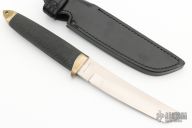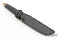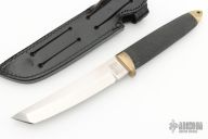This Tanto by Cold Steel features a satin finished tanto blade with .182" blade stock and 1.123" blade depth, hidden tang construction. The handle has a brass guard and butt with rubber grip. Has some scratches and dings, otherwise good condition. Comes with original black leather sheath.