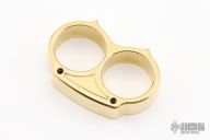 This Model #5, 2 finger brass knuckle by WK21 is made from solid .500” thick 360 Brass. The dimensions are approximately 2.375” x 1.625” x .5” with 1-inch diameter finger holes. Two-tone finish with Micro-brushed satin fingerprint resistant flats and mirror polished edges. Woody Knuckle design and finishing process. Individually boxed. 100% Made in the USA. New from maker. This one has a clear coat.