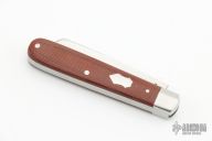 This Slip Joint by TA Davison features a hand rub satin finished blade with a  single nail nick. The handle has stainless steel bolsters, micarta covers with stainless steel escutcheon, stainless steel coin edged liners, stainless steel spring. Comes with zippered case. Has half-stop, flush in all positions. New from maker!
