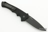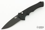 The Benchmade H&K MP5 auto knife was modeled after the late Benchmade Harley-Davidson Nonconformist automatic knife and was developed as a tribute to the legendary H&K MP5 firearm. The entire H&K line of knives are all manufactured by Benchmade and carry their limited lifetime warranty and are eligible for all Benchmade services. The black anodized machined aluminum handle incorporates style and sophistication with the bi-directional milling, ergonomic design and an extended back spacer that acts as a glass breaker. Additionally, the handle scale provides several precise jimping locations for multiple grip options and the knife has an integrated slide safety found on the spine of the handle. This model includes a premium 154CM stainless steel drop point blade with a black finish. The pocket clip is designed for tip up carry only and offers a left or right hand carry option. Made in the USA. Excellent condition. Comes with original box.