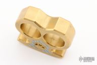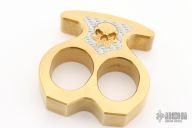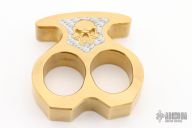 This Custom Brass 2 Finger Knuckle by Burn Knives is .728" thick with milled skull and silver twill inlays on both sides. Has a couple very light scratches, otherwise excellent condition.