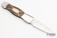 "I was born in North Dakota, but spent most of my youth in Illinois. I went west to attend college; and after graduating and a stint in the army, I returned to Utah State University to pursue a Master’s degree in biology. It was there in 1970 I began making knives as a hobby. It was difficult to get started back then, as there were no books on knifemaking and very few makers around to get advice from. I teamed up with Steve Mullin and we went north to see Bernard Sparks in Dingle, Idaho. Bernie was one of the original custom knifemakers and a founding member of the Guild. He pointed us in the right direction, showed us what a belt sander was, and we went back to Logan to construct one. For the next few years we made knives either full or part time depending on what other employment was available. In 1976 Steve and I bought adjoining pieces of land in North Idaho, built log homes on them and became professional knifemakers. Our first shop was built of logs. We eventually outgrew it and in 1983 I sold my half to Steve and built a shop of my own nearby where I work to this day."