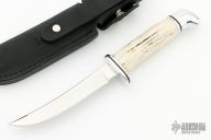 This limited edition 118 Sambar stag personal features a mirror polished 420HC blade with sambar stag handles.  .117" Blade Stock.  .681" Blade Depth.  It comes with a black, distressed leather sheath and is serialized up 1,000.  Includes the original box and papers.  Excellent condition.