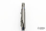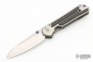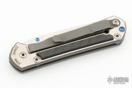 This Small Sebenza 21 by Chris Reeve Knives features a stonewashed blade with anodized single thumbstud, and notched thumbrest. The handle has a two-tone titanium frame with carbon fiber inlays on both sides and bead blast titanium clip positioned for tip up carry. Has titanium barrel spacer. Perfect detent, lockup and blade seating. Has a couple light scuffs and scratches, otherwise excellent condition.