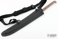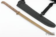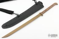 This SR-101 Battle Grade AK 47 by Busse Knives features a bronze coated upswept blade with large choil, .192" blade stock and 1.309" blade depth, full tang construction. The handle has brown canvas micarta scales with hollow tube pins. Comes with a custom kydex sheath. Excellent condition.