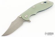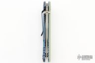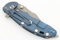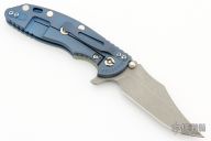 This XM-18 Flipper by Rick Hinderer Knives features a 3.5" stonewashed blade, notched thumbrest and flipper, dual thumbstuds. The handle has a translucent G-10 scale, and a anodized titanium handle and satin finished hardware, filler tab, and titanium clip. Clip can be mounted for tip up or down carry. Nice lockup, seating, and detent. Comes with original box and extra hardware. Excellent condition.