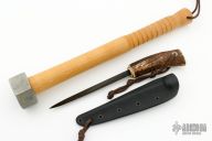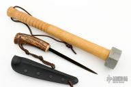 This Trench Set by GHK Knives features a 14" club with large nut and hickory grip. The other item is a triangle dagger with stag handle made from an old file. Comes with a kydex sheath. Both have lanyard holes. New from maker.
