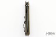 This MSC SNG framelock folder by Mick Strider features a black blade and a MEFP Green G-10 and flamed titanium frame and tip up titanium clip. Includes Hinderer "Lock Bar Stabilizer" for maximum reverse lock retention. Nice detent, lockup and blade seating. New condition.