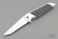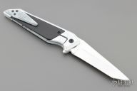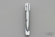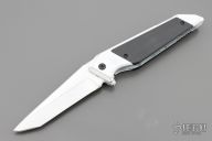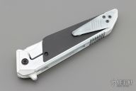 This MK10 flipper by Will Moon features a white coated blade. The handle has a white titanium frame with a black G10 inlay and a G10 backspacer. Tip up G10 pocket clip. Includes a padded zippered case. Excellent Condition.