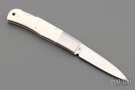 Considered a knife making legend, Jess Horn is primarily known for very high quality, top notch material custom folding knives. Jess Horn has been making knives since 1968 and, while occasionally making fixed blades, he is best known for his investor quality folders, working folders, and collectible period pieces. Jess's linerlock and slip joint folders are typically made with ATS-34 and 154CM stainless steel, and he uses a variety of natural handle materials, though favoring fossil Ivories and Stag for many of his knives. He was a longstanding voting member of the Knife Makers Guild. Jess passed away in 2016.