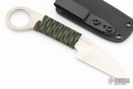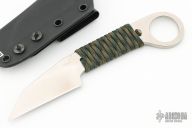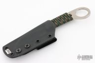This Karambit by Mickey Yurco features a satin finished blade with .176" blade thickness and 1.159" blade depth. The handle has camo cord wrap over full tang. Comes with a kydex sheath. New from maker at the 2023 USN Gathering.