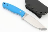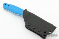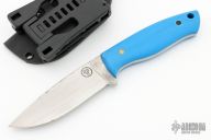 This Hunter from Joshua Keltner of JK Custom Knifeworks features a hand rub satin finished drop point blade with hammer marked flats and ricasso, .158" blade stock and 1.068" blade depth. The handle is comprised blue G-10 with mosaic and black pins over full tang construction. Includes kydex sheath. New from maker.