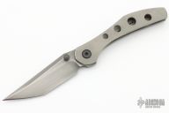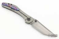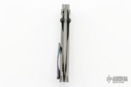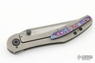 This Mistress by CMF Metalworks features a hand rub acid tumble finished blade with a false top edge and dual thumbstuds. The handle has a tumble and bead blast finished titanium frame with a DarkTi tip up clip and darkened titanium backspacer. Nice detent, lockup and blade seating. Comes with COA dated 10/2020. Has a couple light scuffs, excellent condition otherwise.