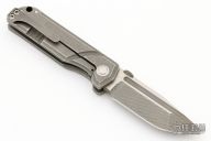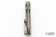 This Squirrel Master XL features a milled blade with a fuller, thumbdisc. The handle has a tumble finished milled titanium frame with tip up pocket clip and a satin finish backspacer. Nice detent, lockup and blade seating. Comes with COA dated 3/26/21. Has a couple light oxidation spots on the blade, excellent condition otherwise.