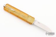 This Zulu Spear by Darriel Caston features a satin finished wharncliffe blade. The handle has a ultem frame with stainless hardware and clip. Black push button. Comes with original box. New from maker.