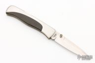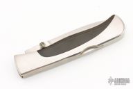 This Mamba Lockback from Blackjack Knives features a satin finished spear point blade with dual thumb studs. The handle has stainless steel scales with black linen micarta inlays. Has some light scratches, otherwise excellent condition.