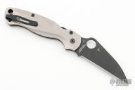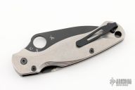 This Paramilitary 2 Liner lock Folder from Spyderco has a black wharncliffe blade with thumbhole and notched thumbrest. Handle has Flytanium Lotus Titanium Scales, comes with original black G-10 scales, nested stainless steel liners and stainless steel tip up clip. Comes with original box and papers. Excellent condition.