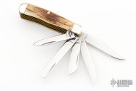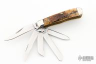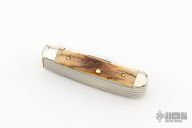 This Tiny Beast by Case knives features mirror polished blades with nail nicks. The handle has nickel silver bolsters, mammoth ivory covers, brass liners and stainless steel springs. Excellent condition.