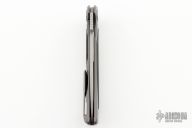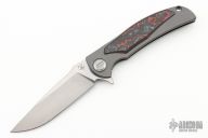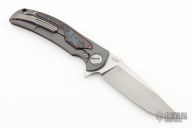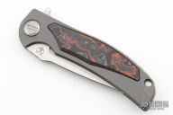 This Molten Overkill framelock flipper from Shirogorov has a two-tone finished drop point blade with a notched thumbramp.  The handle has a bead blasted titanium frame with lava & Ash Carbo Ti inlays, matching titanium backspacer, tip up titanium clip with hidden screws. Excellent lockup, crisp detent, and perfect seating. MRBS. Knife comes with COA. Excellent Condition.