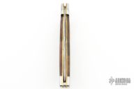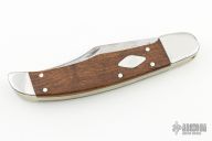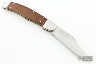 This large slipjoint by LE Dickey features a mirror polished blade with nail nick. The handle has stainless steel bolsters, wood covers, brass liners, steel spring. Has half-stop. Has some scratches, otherwise good condition.