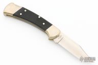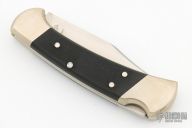 This Buck 112 Auto features a satin finished clip point blade. The handle has a nickel silver frame with black G-10 scales. Comes with original box, papers and sheath. Excellent condition.